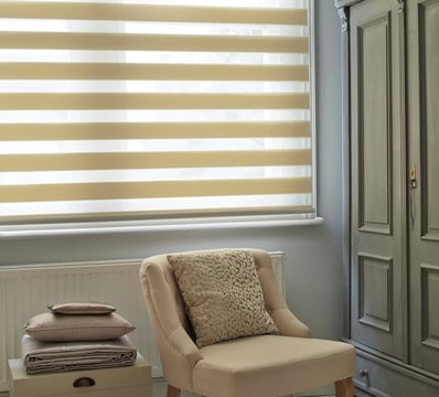 Practical And Stylish, This Dynamic Blind Enables Light Control While Maintaining An Outside View. With It’s Unique Design, Dual Shade Blinds Are Made Up Of Two Layers Of Opaque And Sheer Fabric Which Glide Past Each Other, Bringing Varying Degrees Of Sunlight Into Your Home. Close The Blind For Full Privacy Or Have Them Open To Allow The Light To Filter Into Your Room. There’s A Wide Range Of Stylish Colours To Choose From, Including Timeless Neutrals And More Vibrant Shades.